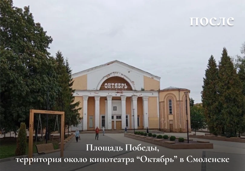 Так, на площади Победы в Смоленске выполнили благоустройство сквера перед кинотеатром «Октябрь». Полностью заменили основание и покрытие площадью более 8 тысяч квадратных метров, обновили систему освещения, установили новые лавочки, качели и урны. Сквер стал еще более привлекательным благодаря архитектурно-художественной подсветке памятника «Защитникам и освободителям Смоленска» и участка крепостной стены».