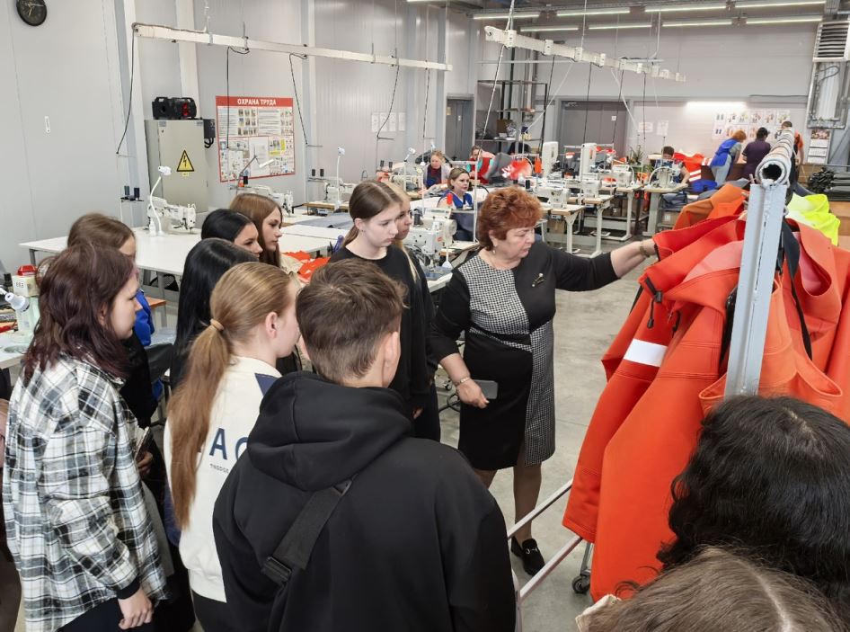 После беседы директор лично провела для школьников экскурсию по производственным цехам. Учащиеся увидели, как создаётся продукция, которой пользуются сотрудники крупнейших корпораций страны — «Аэрофлота», «Газпрома», «Роснефти» и «Норникеля». Подростки с удивлением наблюдали за процессом «сваривания» ткани на специальных станках — эта технология используется для сохранения герметичности спецодежды.